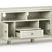 - Extra wide TV Stand is perfect for TVs up to 80 inches, includes cord management cut-outs for easy installation of TV and media components.