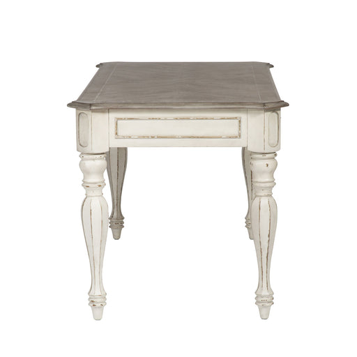 Work from home in style with the Modern Farmhouse writing desk. Crafted of poplar solids with knotty white oak veneers, the pieces feature heavy di...