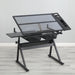 Adjustable Tempered Glass Drafting Printing Table With Chair - Black