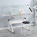 Adjustable Tempered Glass Drafting Printing Table With Chair - White