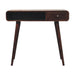 - Curved Writing Desk - Introducing our stylish Writing Desk, crafted from solid mango wood. It's sustainably sourced and comes in a beautiful finish. With one open slot and one drawer, it helps keep your space tidy. One shiny brass knob and and four Nordic-style legs add a touch of elegance. Perfect for work or study, this desk is a functional and attractive addition to your home or office.