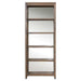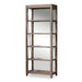 Handcrafted From Select Hardwoods In A Deeply Grained Weathered Oak Finish With Gray Glazing, Featuring A Mirrored Back And Iron Crossbar Accents In An Antique Pewter Finish. Has Four Fixed Display Shelves.