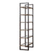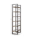 This Forged Iron Framed Etagere, Finished In Aged Steel With Light Distressing Features Six Display Shelves With Driftwood Finished Surrounds, Inset With Clear Glass.
