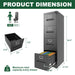 Premium 4 Drawer File Cabinet With Lock Metal Vertical File Cabinet For Office Or Home In Steel, A4 Legal / Letter Size - Brushed Nickel