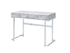 - Modern Elegance: This writing desk features a sleek white engineered stone top and a lustrous chrome finish, exuding modern elegance and sophistication in any workspace.