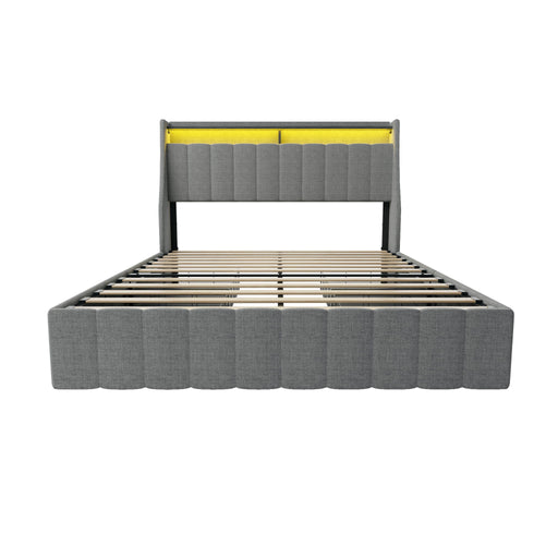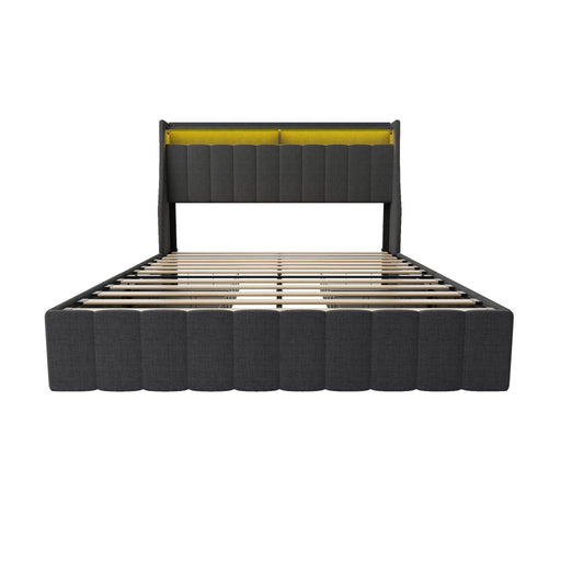 Charging Convenience: Integrated storage headboard with 2 USB ports for easy device charging. Durable Support: Heavy-duty metal slats ensure long-...