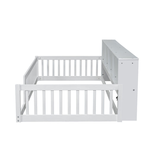 This versatile upholstered bed combines smart storage solutions with modern charging capabilities. The headboard features convenient storage racks,...
