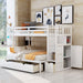 Twin Over Full / Twin Bunk Bed, Convertible Bottom Bed, Storage Shelves And Drawers - White