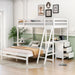 Twin Over Full Bunk Bed With Built In Desk And 3 Drawers - White
