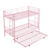 Modern Metal Bunk Bed With Trundle, Durable Steel, Twin Over Twin - Pink