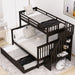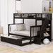 Twin Over Full Bunk Bed With Twin Size Trundle, Storage And Guard Rail For Bedroom - Espresso