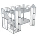 Metal Twin Over Twin Castle-Shaped Bunk Bed With Wardrobe And Multiple Storage - Gray / White