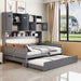 Full Size Wooden Daybed With Twin Size Trundle, And All In One Cabinet And Shelf - Gray
