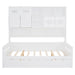 Full Size Wooden Daybed With Twin Size Trundle, And All In One Cabinet And Shelf - White