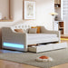 Full Long Size Daybed With LED Belt And Trundle - Beige
