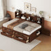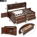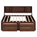 Full Size Captain Bed With Built In Storage Shelves, 4 Drawers And 2 Cabinets - Antique Brown