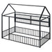 Twin Size Bed House Frame With Fence And Shelves - Black