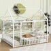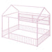 Full Size Bed House Frame With Fence And Shelves - Pink