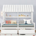 Twin Size House Platform Beds With 2 Drawers, Side By Side Design For Shared Bedrooms - White