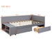 Twin L Shaped Upholstered Platform Bed With Storage Drawers - Gray
