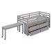 Full Size Loft Bed With Retractable Writing Desk And 4 Drawers, With Lateral Portable Desk And Shelves - Gray