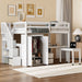 Full Size Loft Bed With Stairs, Bookshelf, Drawers, Desk & Wardrobe, Space Saving Multifunctional Furniture - White
