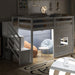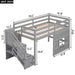 Twin Size Loft Bed With Storage Staircase, Window & LED Light - Gray