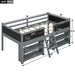 Twin Size Low Loft Bed With Movable Shelves And Ladder, Decorative Chalkboard Guardrail - Gray