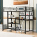 Full Size Loft Bed With Desk And Whiteboard, With 3 Shelves And Ladder - Black
