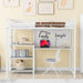 Full Size Loft Bed With Desk And Whiteboard, Loft Bed With 3 Shelves And Ladder - White