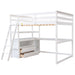 Full Size Loft Bed With Built In Desk, Shelves, And 2 Drawers - White