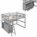 Full Size Loft Bed With Built In Desk, Shelves, And 2 Drawers - Gray
