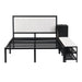 Upgrade your bedroom with this sleek Metal Platform Bed, combining industrial design with modern functionality. The bed features a durable metal frame with soft, comfortable upholstery for ultimate relaxation. With two-tier side storage shelves and a convenient wooden storage cabinet, you'll enjoy ample space to organize your essentials. The cushioned footrest above the storage shelves doubles as a cozy spot to rest your feet at the bed's end.