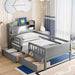 Twin Size Platform Bed With LED Light, Multi Functional Headboard, Guardrail And 2 Drawers - Gray