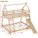 Twin Over Queen House Bunk Bed With Climbing Nets And Climbing Ramp - Natural