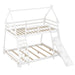 Twin Over Queen House Bunk Bed With Climbing Nets And Climbing Ramp - White