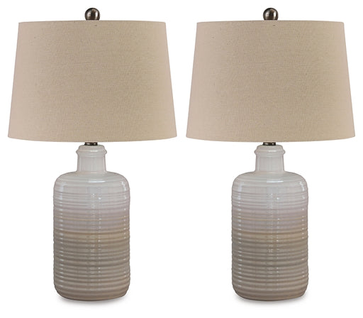 Fresh and light, the dimensional design of this delightful ceramic table lamp borrows from a retro theme to update a transitional space. Made of ce...
