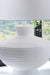 Cool, clean and contemporary. This table lamp's sculptural base is a forward-thinking approach to fashionable function. Complete with a crisp white finish and horizontal stripe details, the piece is a striking addition to a sofa-side or entryway table.