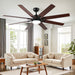 Large Ceiling Fans With Lights And Remote, Indoor / Outdoor Modern Ceiling Fan For Kitchen Living Room Patio, 6 Speed Reversible Quiet DC Motor, Dual Finish 8 Blades - Black