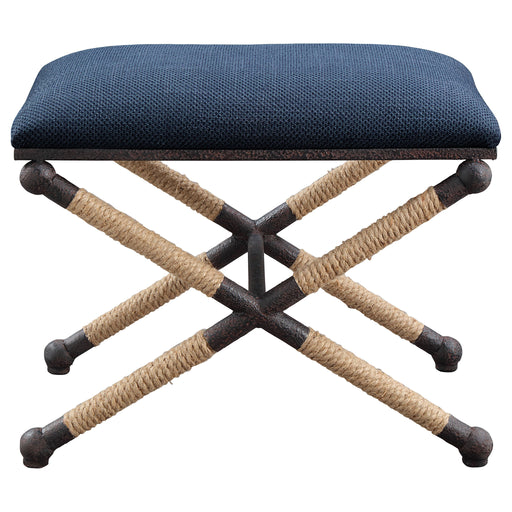 Rustic Iron Frame With A Nautical Touch, Wrapped In Natural Fiber Rope Accents. Cushioned Top Is A Cotton Blend In A Rich Textured Navy Blue.Produc...