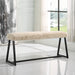 A Space Saving Seating Solution Featuring A Slim Bench Seat Upholstered In Plush Long Haired Faux Sheepskin In A Toasty Beige Over A Matte Black Finished Iron Base. Seat Depth Is 8".