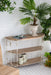 - Farmhouse Style: Decorative shelving unit with three spacious wooden shelves and an intricately designed iron frame, capturing the beauty of farmhouse style.