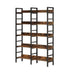 5 Tier Double Wide Bookshelf For Living Room - Rustic Brown