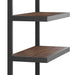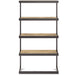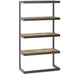 - Features Four (4) large solid Acacia open shelves, sturdy matte graphite Gray metal frame and base, Includes Anti - Tip Hardware