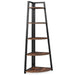 Tall 5 Tier Corner Bookshelf For Living Room - Rustic Brown