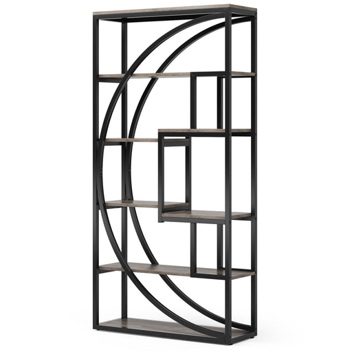 Sleek Geometric Design: Modern half-moon silhouette with metal frame and vintage gray shelves enhances any room's visual appeal. Ample 8-Shelf Sto...