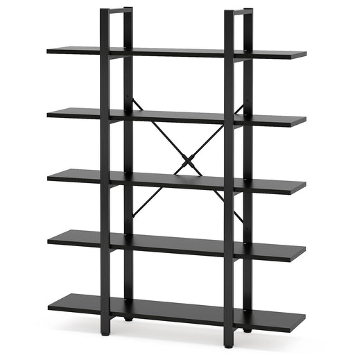 Spacious 5-Tier Storage: Five large open shelves offer ample room for books, decor, kitchen items, or personal collections. Industrial Steel-Wood ...