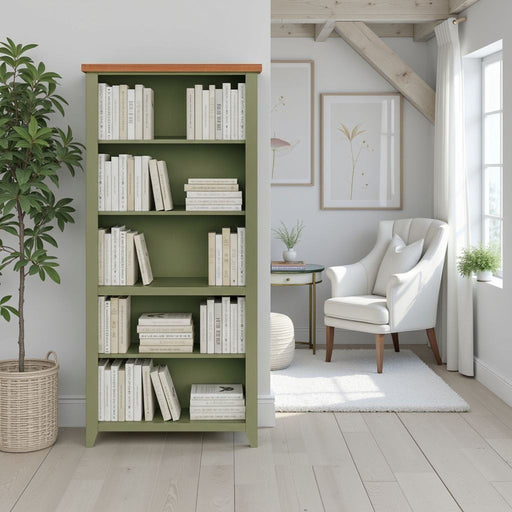Two fixed shelves Three adjustable shelves Closed back Wood Type: Poplar Solids and Okoume Veneers with Knotty Alder Top No Assembly Required Made...