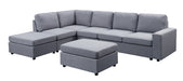 Cassia - 7 Seat Reversible Modular Sectional Sofa With Ottoman - Light Gray