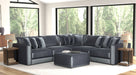 Remington is a track arm design Modular Sectional with loose backs and our Cuddler Cushion for ultimate comfort. Available in your choice of two luxurious velvet fabric colors: Pine or Slate.